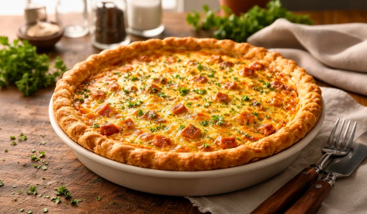 I first tried this quiche at a family brunch. The golden crust and melted cheese were irresistible. The ham added a salty, smoky flavor that complemented the creamy filling.