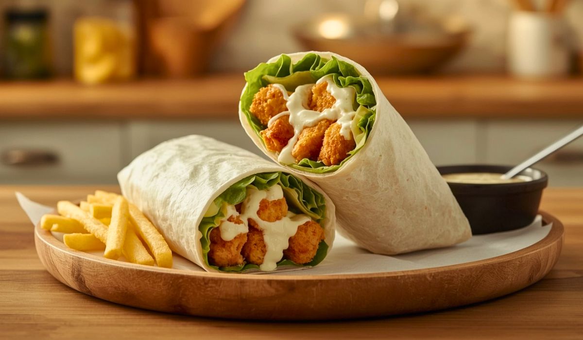 You will love this wrap because it is easy and very tasty. The crispy chicken, creamy sauce, and soft tortilla go so well together.